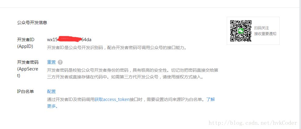 开发者密码 点击重置,用手机微信扫面二维码后便可得到。config.json 代码如下