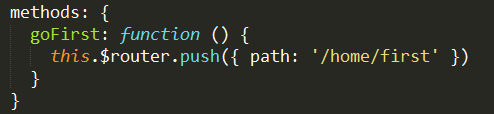 this.$router.push({ path: '/home/first' })