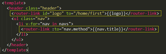 这种只需要跳转页面,不需要添加验证方法的情况,可以使用 <router-link> 来实现导航的功能: