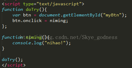 因为对于匿名函数而言,其作用域链包含三个对象:匿名函数的变量对象、doTry()的变量对象和全局变量对象。此时doTry函数对象中btn变量引用了dom对象,即doTry函数对象引用dom对象; 然后根据匿名函数包括的对象,dom对象的onclickà匿名函数对象、匿名函数对象àdoTry函数对象,即得dom对象引用doTry()。所以解释了互相引用的情况存在,导致内存无法。