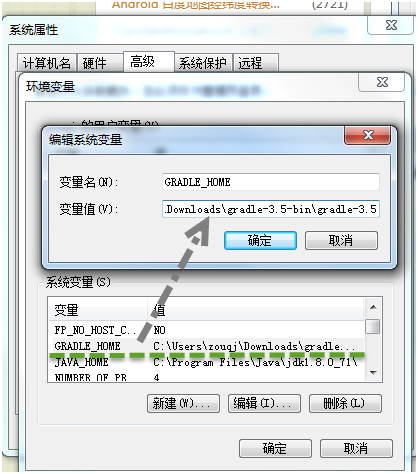 %JAVA_HOME%直接这样设置,而%GRADLE_HOME%\bin得加上bin目录