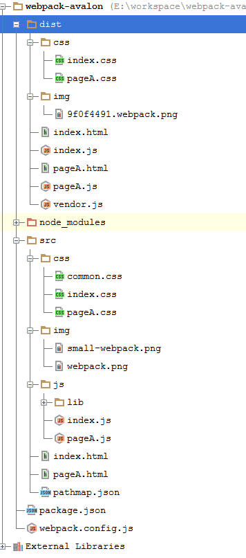 运行webpack后的项目的目录结构: