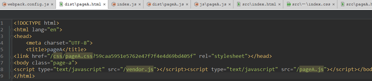 生成的 dist/index.html 自动引用了 index.css 和相关的js,由于设置了publicPath 所以相应的链接都采用了绝对路径