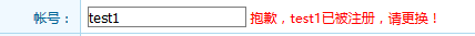 accountText.innerHTML = "<font color='red'>抱歉,"+account+"已被注册,请更换!</font>"