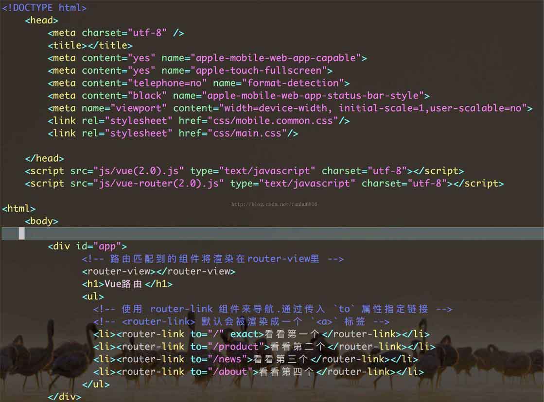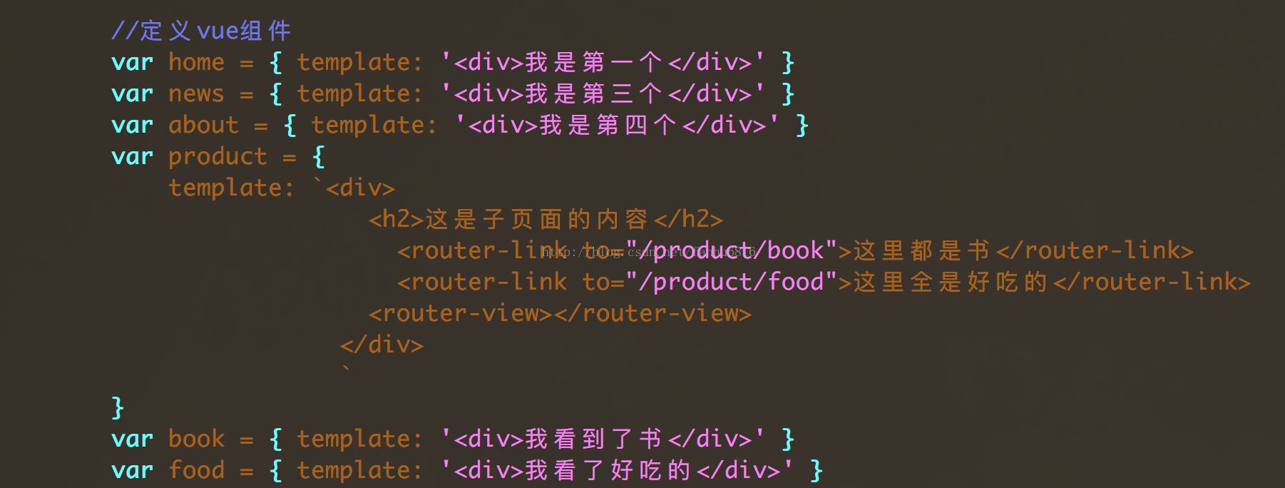 首先简单介绍使用vue-router的四个基本步骤:(为了方便演示,所有代码都写在一个文件里)