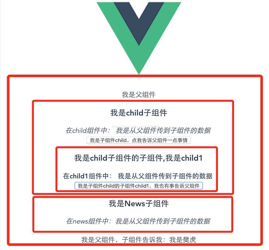 下面的例子中app为父组件,child和news为app的子组件,child1为child的子组件。下面将演示从app向另三个子组件传递数据 和 从三个子组件向app父组件传递数据。