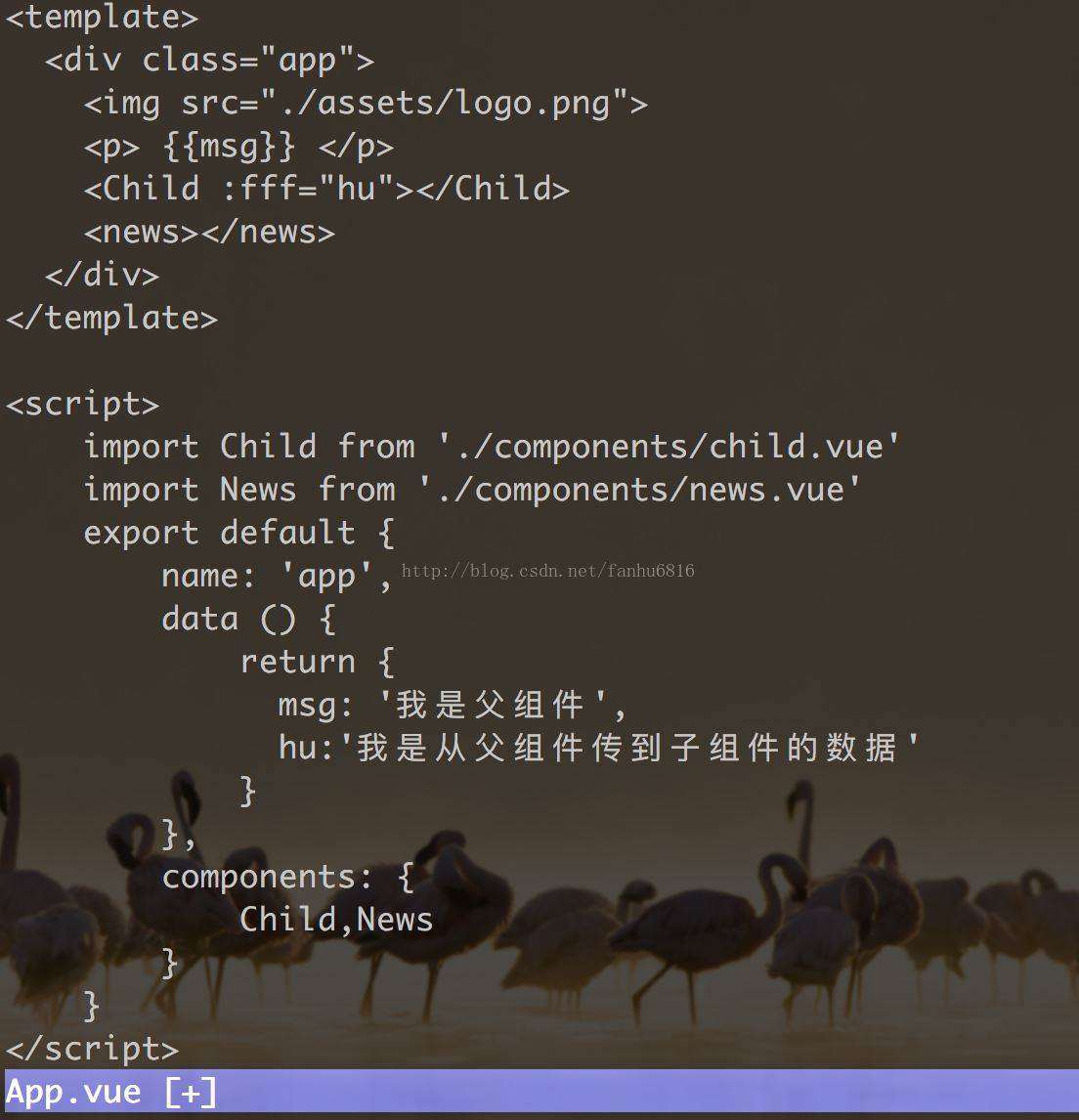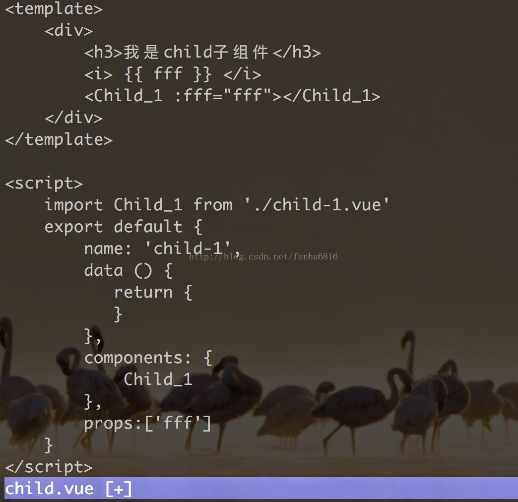 在父级中:fff是在子级中要用的名字,如果fff前面有:那么后面的hu就是个变量,在data中要去定义。如果没有那么就是普通字符串。