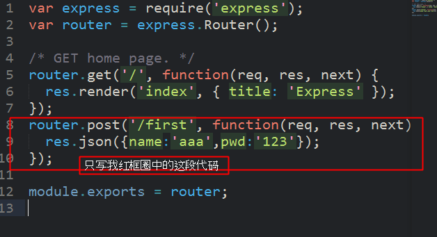 res.json({name:'aaa',pwd:'123'});
