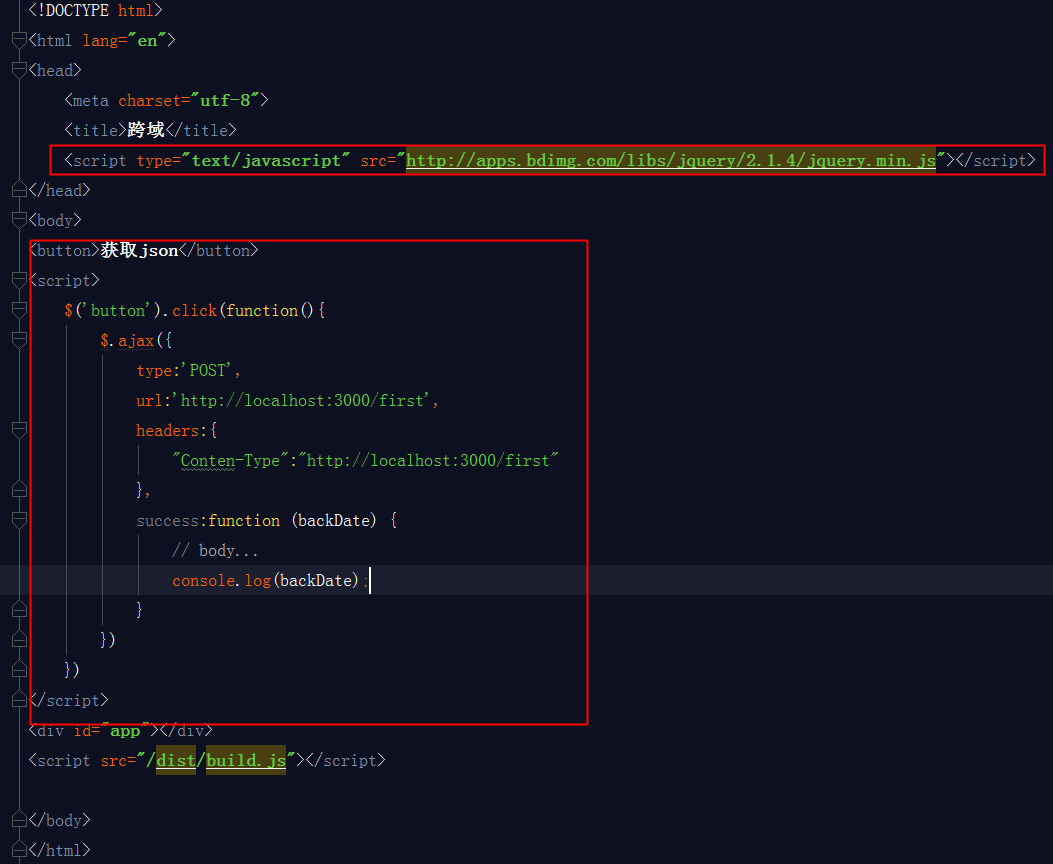 说明:我们这里引入了jquery,目的是为了用他的ajax插件,这里有同学可能会问了,为什么不用vue-resource?