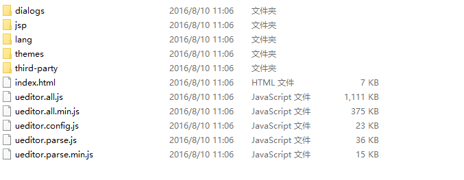 1、下载UEditor官网最新的jsp版本的包,下载完成解压之后得到一个ueditor1_4_3_3-utf8-jsp的文件夹,里面包含的内容如下:
