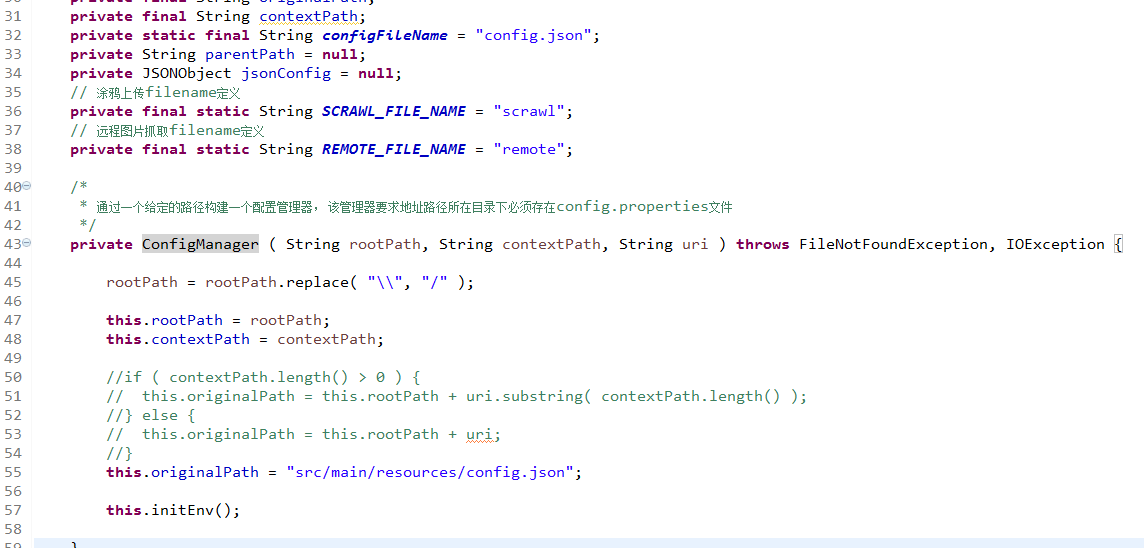 然后jsp目录下的config.json文件放到java/main/resources目录下,修改ConfigManager.java类,如下: