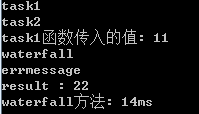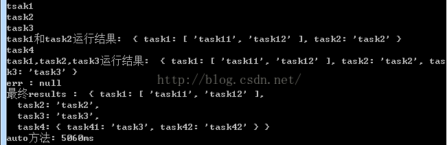 如果中途出现错误,后面的函数将不在执行,之前执行的结果和错误信息将直接传到最终的回调函数