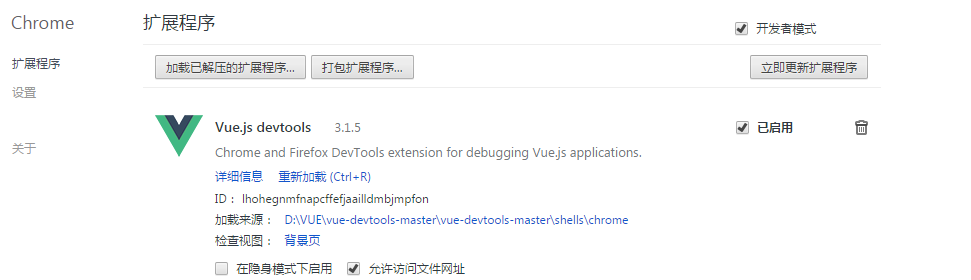 2.再点击加载已解压的扩展程序,然后把shell>chrome文件夹放入
