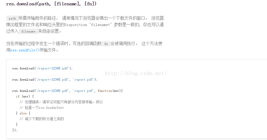 在nodejs的express框架中,下载变得非常简单,就一个方法,res.download()