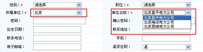 * @Description: 使用jquery的ajax完成二级联动,使用所属单位,关联单位名称