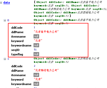 这里使用正则表达式拦截一个或多个ddlCode和ddlName,这样json数据中就只含有ddlCode和ddlName了。