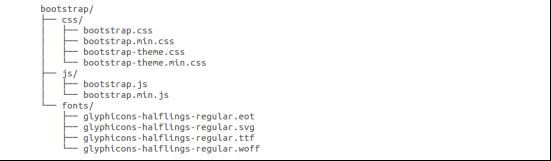 当您下载了 Bootstrap 的已编译的版本,解压缩 ZIP 文件,您将看到下面的文件/目录结构:
