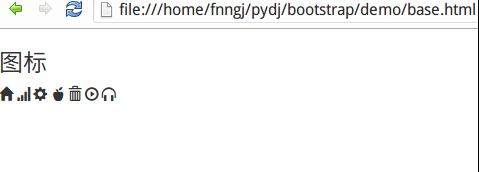 <h3>图标</h3> <span class="glyphicon glyphicon-home"></span> <span class="glyphicon glyphicon-signal"></span> <span class="glyphicon glyphicon-cog"></span> <span class="glyphicon glyphicon-apple"></span> <span class="glyphicon glyphicon-trash"></span> <span class="glyphicon glyphicon-play-circle"></span> <span class="glyphicon glyphicon-headphones"></span>