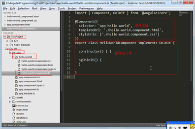 该组件使用的DOM元素为<app-hello-world></app-hello-world>,即:在HTML中使用<app-hello-world></app-hello-world>标签后浏览器就可以识别啦