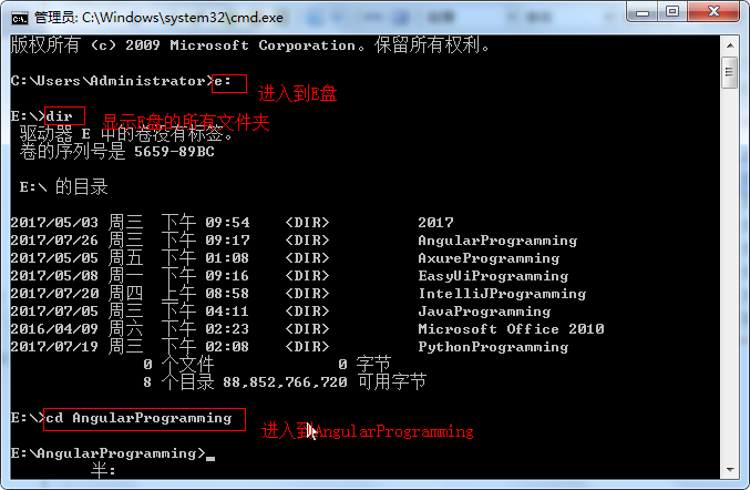 2 启动命令窗口,并进入该文件夹