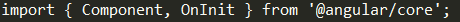 代码解释:从@angular/core模块中导入Component组件和OnInit组件