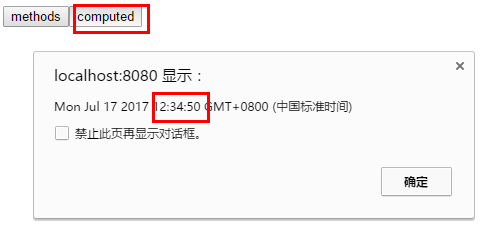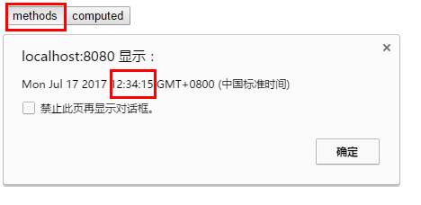 注意两次点击methods返回的时间是不同的!!