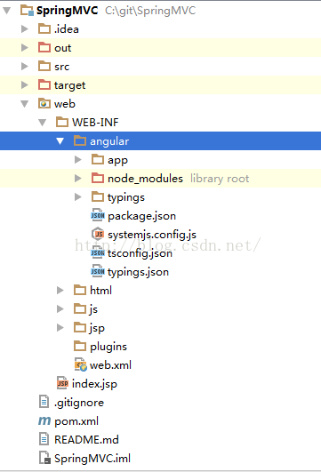 将文件全部拷贝到springmvc的项目中,拷贝过程中可能出现文件路径太长而失败,那就先对整个文件压缩,然后拷贝压缩过后的文件,然后解压缩即可。目录结构如下,我是拷贝到angular目录下的