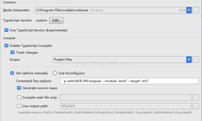 -p web\WEB-INF\angular 这个命令是表示编译制定的目录,若果没有,则搜索项目根路径,由于我们放在angular目录中,所以需要进行设置