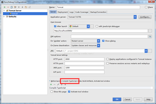 我们热部署到tomcat的步骤,一般都是make,然后打包,然后启动项目,做到自动编译,只需要在make之前,对Typescript进行编译即可