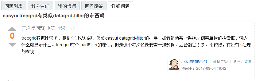 期间我也看了下网上的解决方法,不知道是不是太简单了,网上关于TreeGrid过滤的资源很少。博问里也都被大牛无视了。