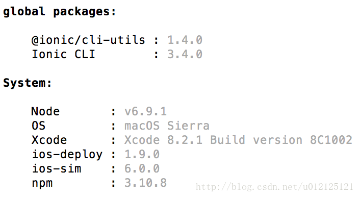 全局升级了Cordova和Ionic的版本,分别是7.0.1和3.4.0。输出ionic info 打印出最新的环境配置信息。这里要特殊指出的是Ionic CLI。Ionic和Ionic CLI是不一样的东西。Ionic CLI是基于nodeJS的工具脚手架,开发Ionic应用程序过程中使用的主要工具。更新了最新的Ionic版本后,该工具也随之升级。当我们用Ionic CLI提供的命令去运行打包项目时,显示如图示。