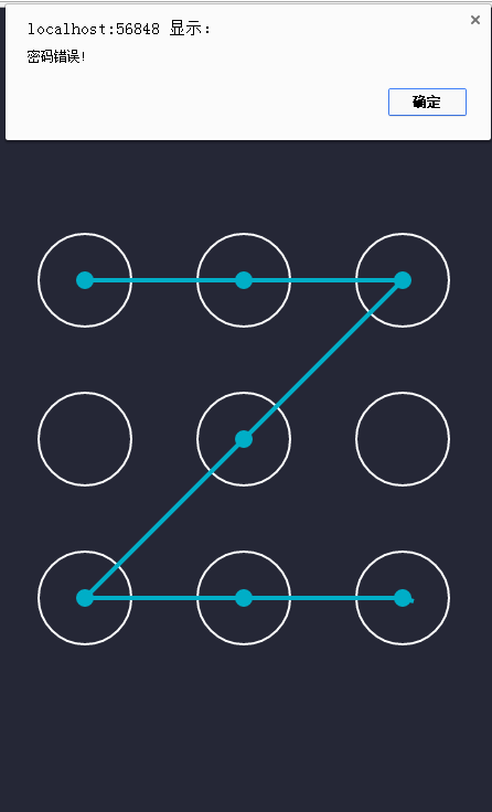 密码判断代码:(这里的密码“34569”意思为页面上从上到下,从左到右的9个原点中的5个点)