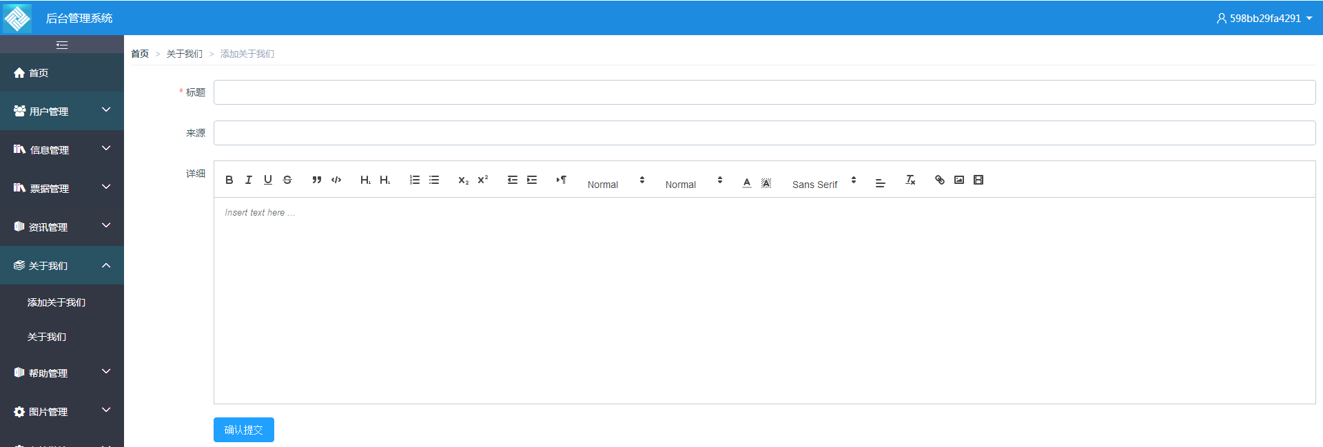 <el-breadcrumb-item>添加关于我们</el-breadcrumb-item>