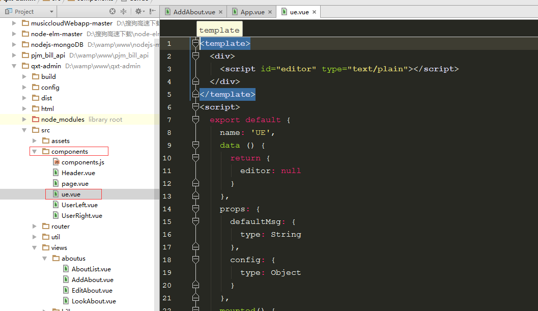 首先我们在components文件夹里创建ue.vue组件,效果图如下: