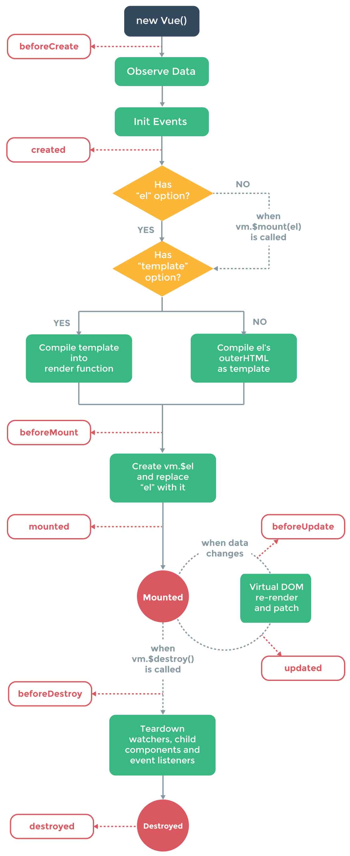 下图是Vue实例生命周期的图示