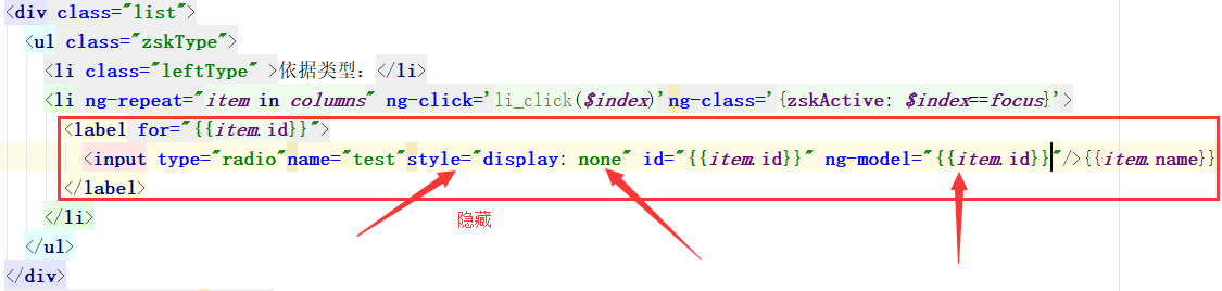 箭头所指就是在li里写一个隐藏的radio标签,把后台需要的id字段绑定到这个隐藏的radio上选中的时候传这个选中的radio的value就行
