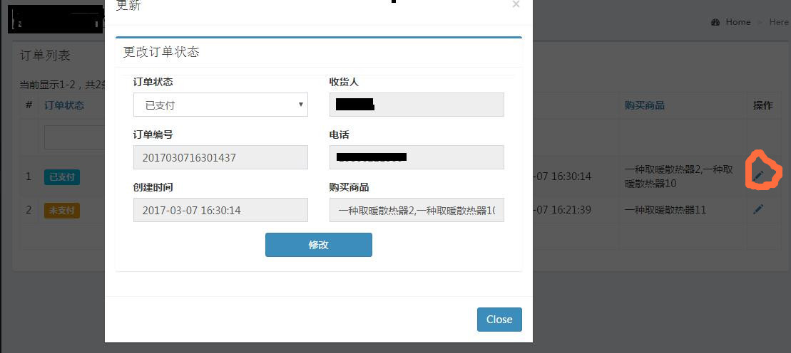 1.在girdview中加入更新操作按钮用来调用modal弹窗