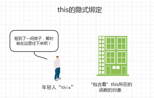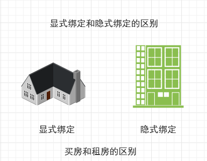 在这里,我把显式绑定和隐式绑定下,函数和“包含”函数的对象间的关系比作买房和租房的区别。