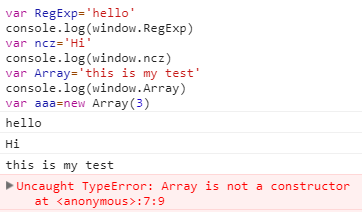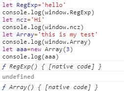 从上图代码中看出即便是全局对象RegExp Array都会被覆盖
