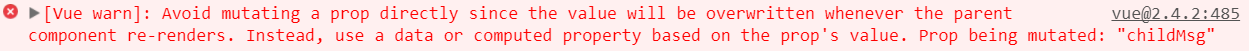 另外,每次父组件更新时,子组件的所有 prop 都会更新为最新值。这意味着不应该在子组件内部改变 prop。如果这么做了,Vue 会在控制台给出警告