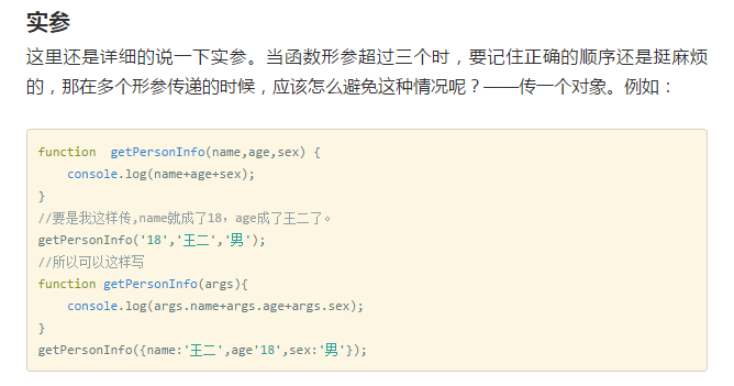 getPersonInfo({name:<span class="hljs-string">'王二'</span>,age<span class="hljs-string">'18'</span>,sex:<span class="hljs-string">'男'</span>});</code></pre>