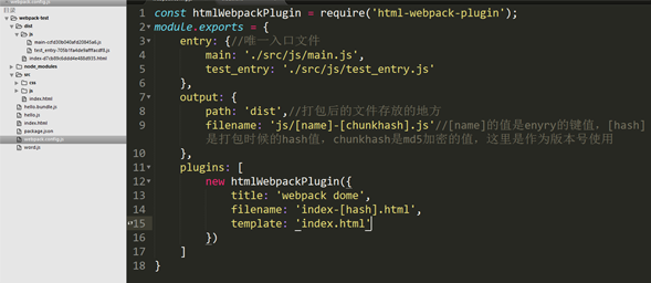 - filename: 输出的 HTML 文件名,默认是 index.html, 也可以直接配置带有子目录。
