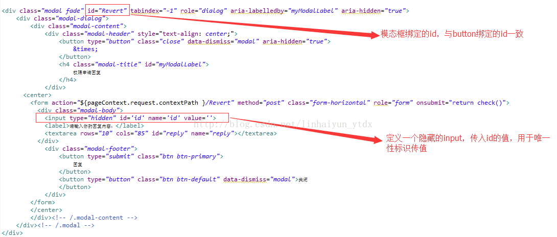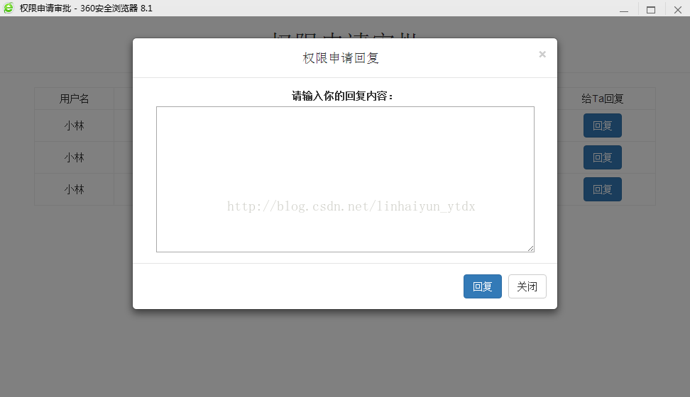 为了实现父窗体与其的交互,通常需要向其传值,实现带参数的传递,查看数据的唯一性。例如下面窗体:点击任意一个模态框("回复"按钮),如果不做任何处理,则会出现回复混淆,甚至程序出错的情况。