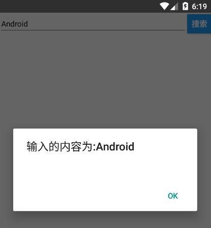 在输入框中输入android,点击搜索Button,可以看到输入的Android展示到了Alert中。