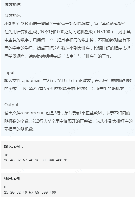 看题干:N个1到1000之间的随机整数(N小于等于100)