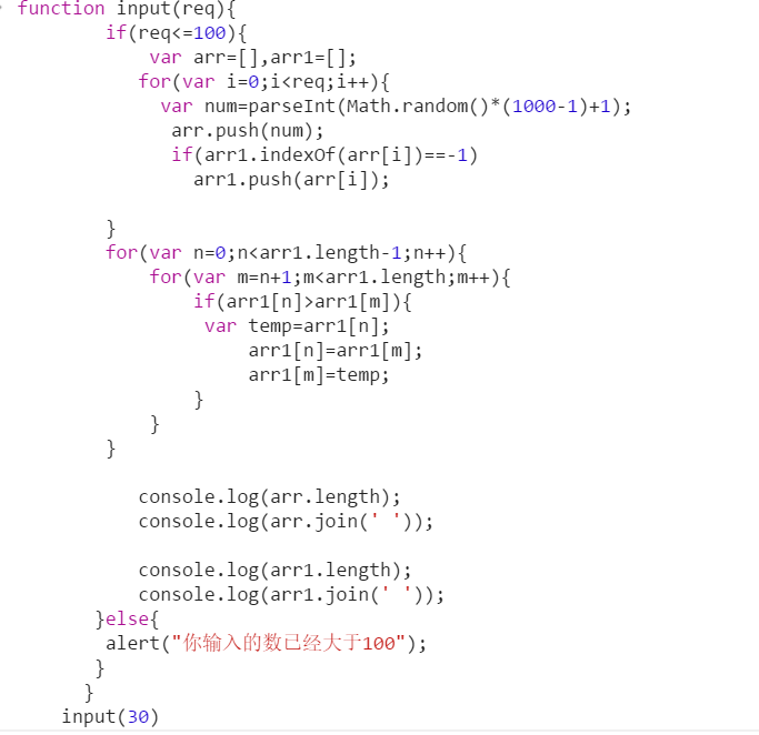 填入数组的事已经完成了,接下来就是排序的问题了。冒泡(简单粗暴)。生成随机数组的个数,就用数组的长度喽,arr.length.