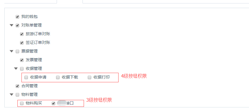 刚开始没有特殊需求,三级分支,效果看着还可以。但是接下来的新需求:增加页面操作按钮权限,即达到四级分支,同时要求四级权限布局方式为横向,而且操作按钮权限非固定四级树,但是样式要求一致。这样子就很难操作了,如果单单是四级树为横向,还可以调调样式完成。本来想修改element的tree控件源码来实现,网上查了一些资料,还没有很好的办法生成其编译文件。最终决定自己写组件完成上述需求。