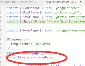 修改app.component.ts, HomePage 改为 'HomePage' , 删除app.module.ts及其他页面用到的 import { HomePage } from '../pages/home/home'; 因为不需要这个了,在需要的位置直接字符串引用即可。