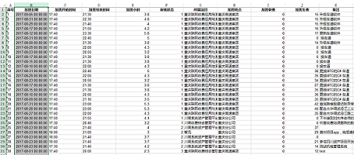 通过前端自定义的按钮,调用后台的导出文件action,即可导出数据到excel文本中。展示效果如下(部分列数据我手动删除了):