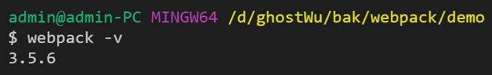 第二步、全局安装webpack(3.5.6版本): npm install webpack@3.5.6 -g 安装完成之后用webpack -v 查看webpack的版本